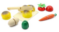 Набор состоит из продуктов, "фруктов" и "овощей". Детали крупные, удобные для детской руки. Каждый продукт разделен на несколько чстей, скрепляемых между собой лентой-липучкой.Размеры: Поднос - длина 17 см, ширина 13 см, высота 5 см. Морковка - 10см, диаметр 2 см. Перец - 3 см, диаметр 3,5 см. Яичко - 5 см, диаметр 3, 5 см. Помидор - 6 см, диаметр 3,5 см. Батон - 11 см, ширина 4 см.